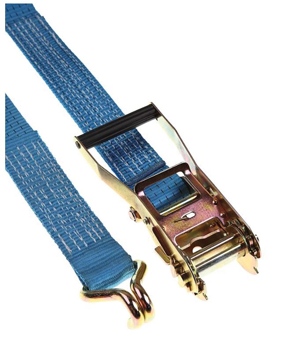The heavy duty VL500 claw hook ratchet lashing is a two part assembly with a 5,000kg rated break force. It features a double locking long wide handle ratchet, claw hook end fittings and is produced using blue 50mm width high tenacity polyester webbing.