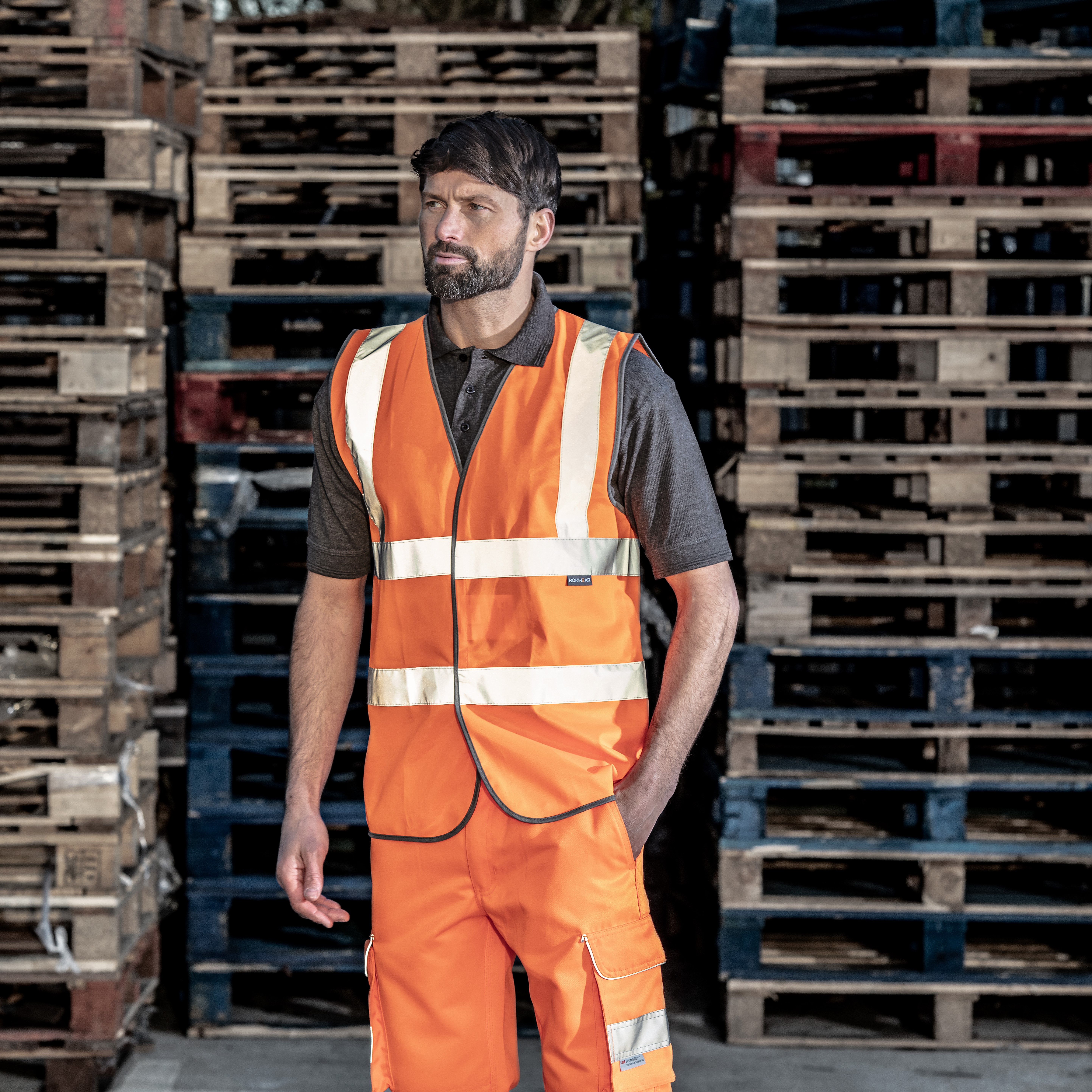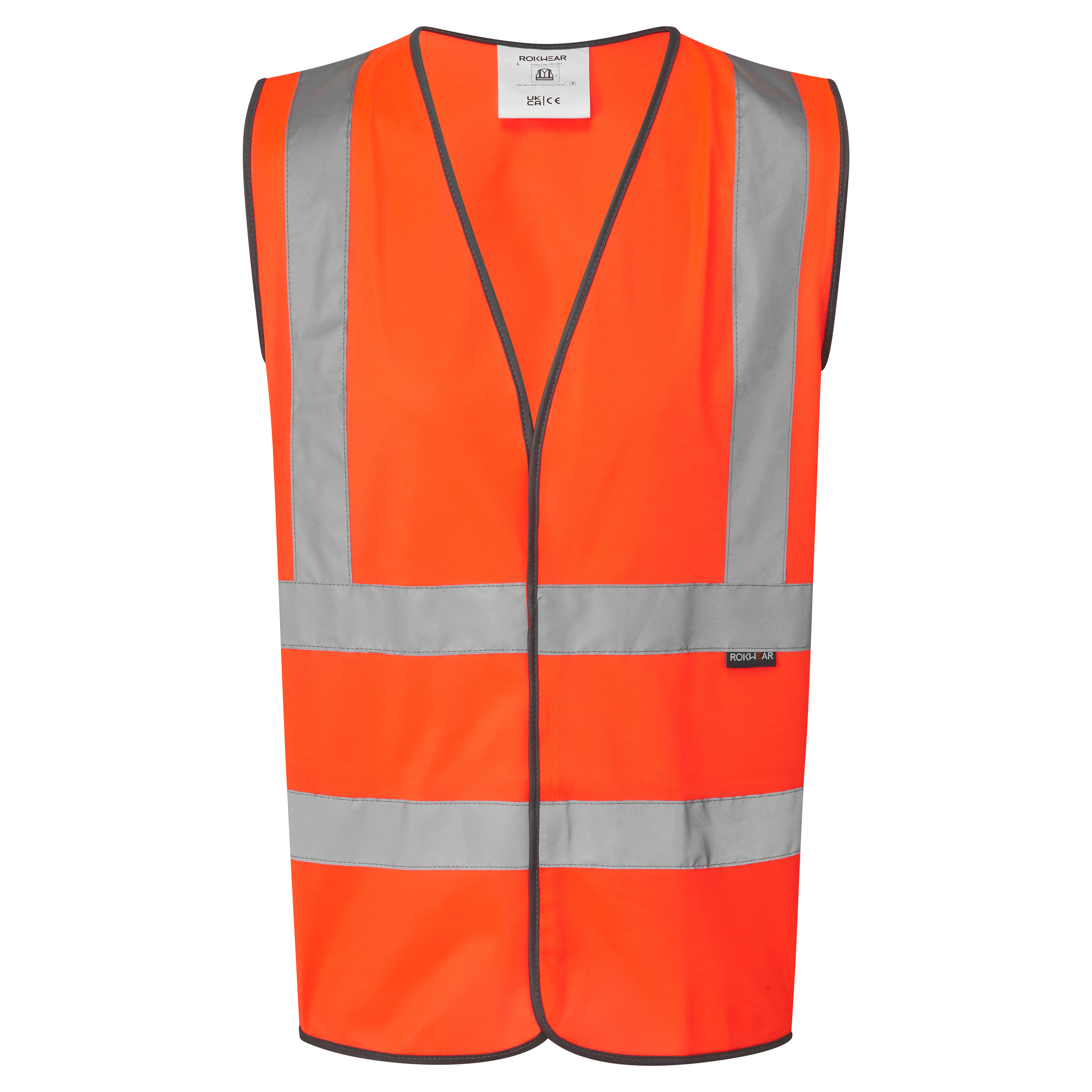 ROKWEAR Hi-Vis Clothing. Velcro fastening. Lightweight and durable with a generous fit. Large area for printing. Double bands and braces. Quality piping. Sewn on tape.