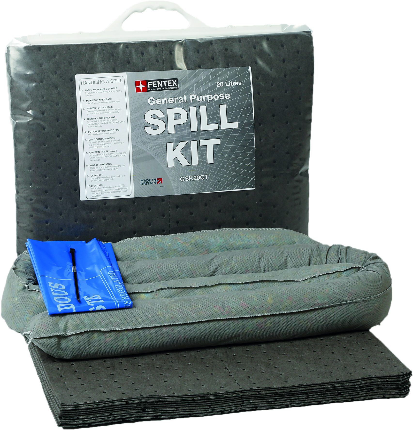 A spill kit is a set of equipment specially designed to quickly absorb and clean up liquids.